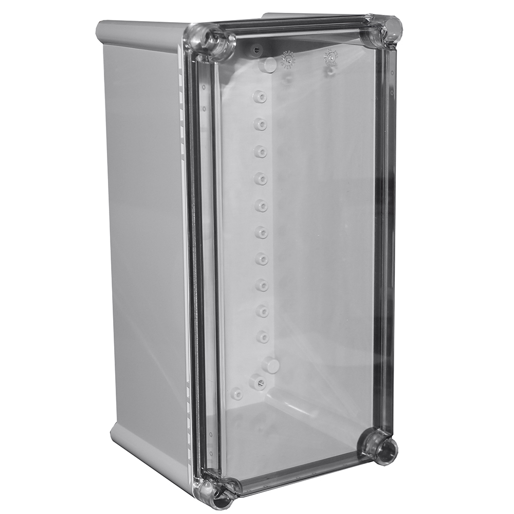13. Puszka natynkowa hermetyczna wym/wew 460x380x120 transparentna z zawiasami IP66 M-L 015.A.PK 304.39
