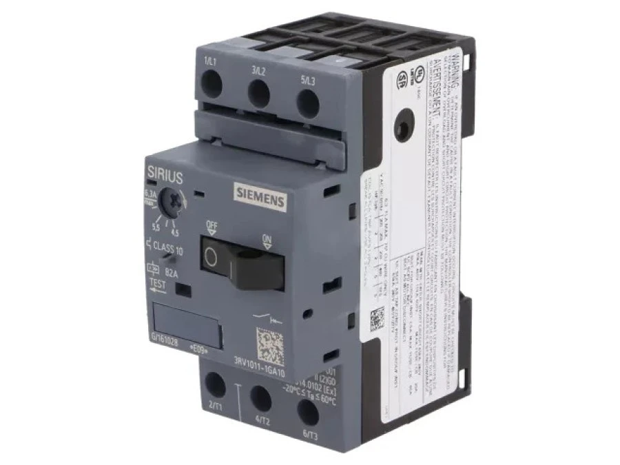 8. Wyłącznik zasilania Siemens 3RV2011-1GA10 Zakres ustawienia (Prąd): 4.5 - 6.3 A Maksymalne napięcie przełączania: 690 V/ 379.00