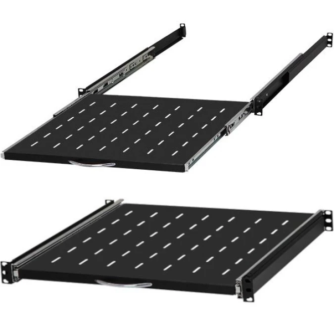 Półka wysuwana do szafy RACK 19 1U 450mm z uchwytem czarna