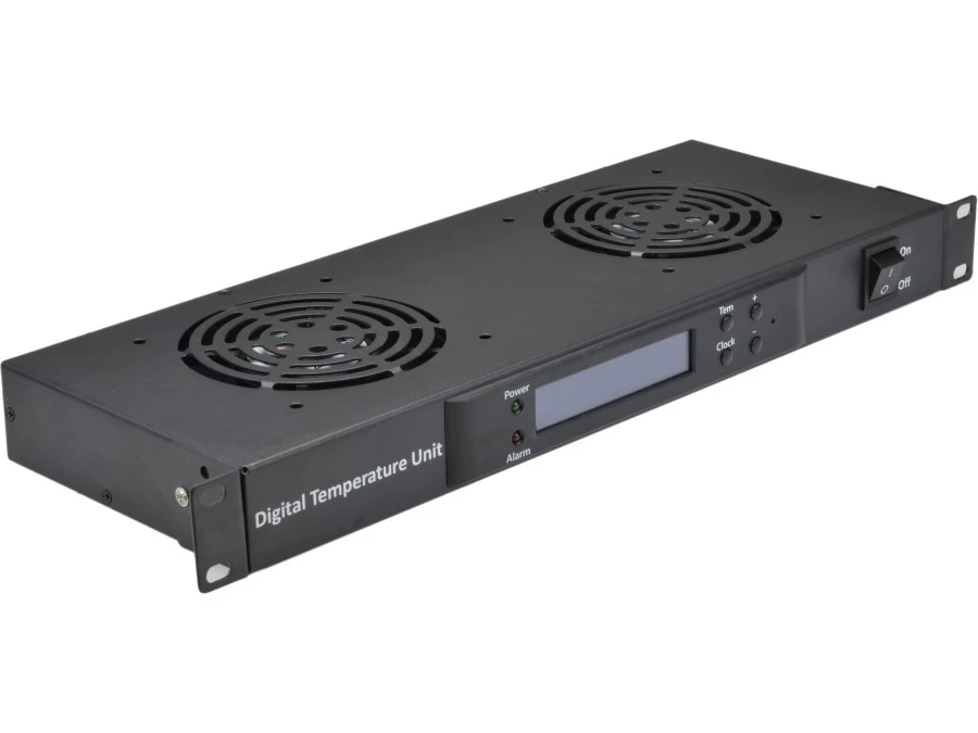 Panel chłodzący 2x wentylator z termostatem RACK 19 cali 1U LCD czarny NEKU