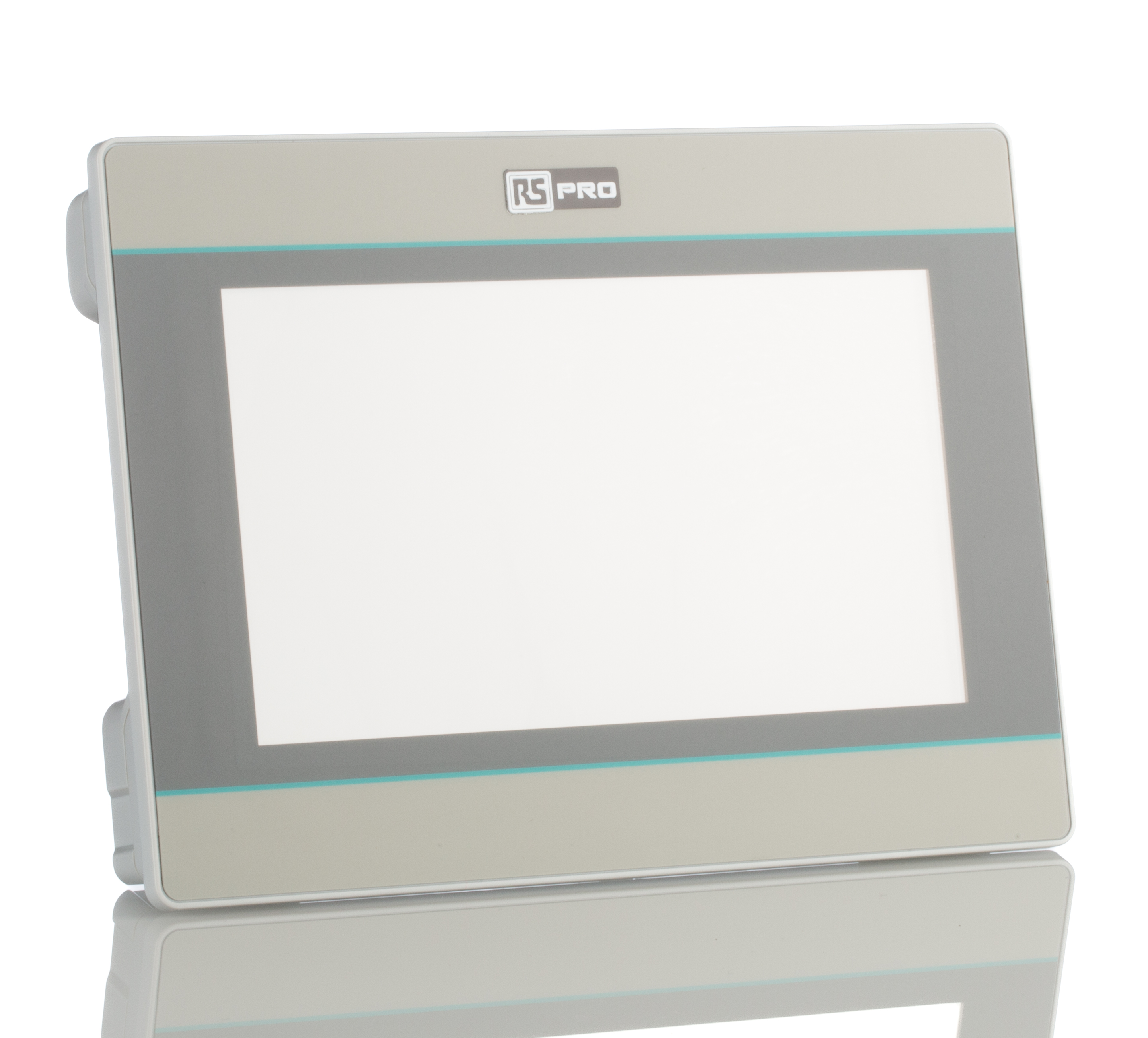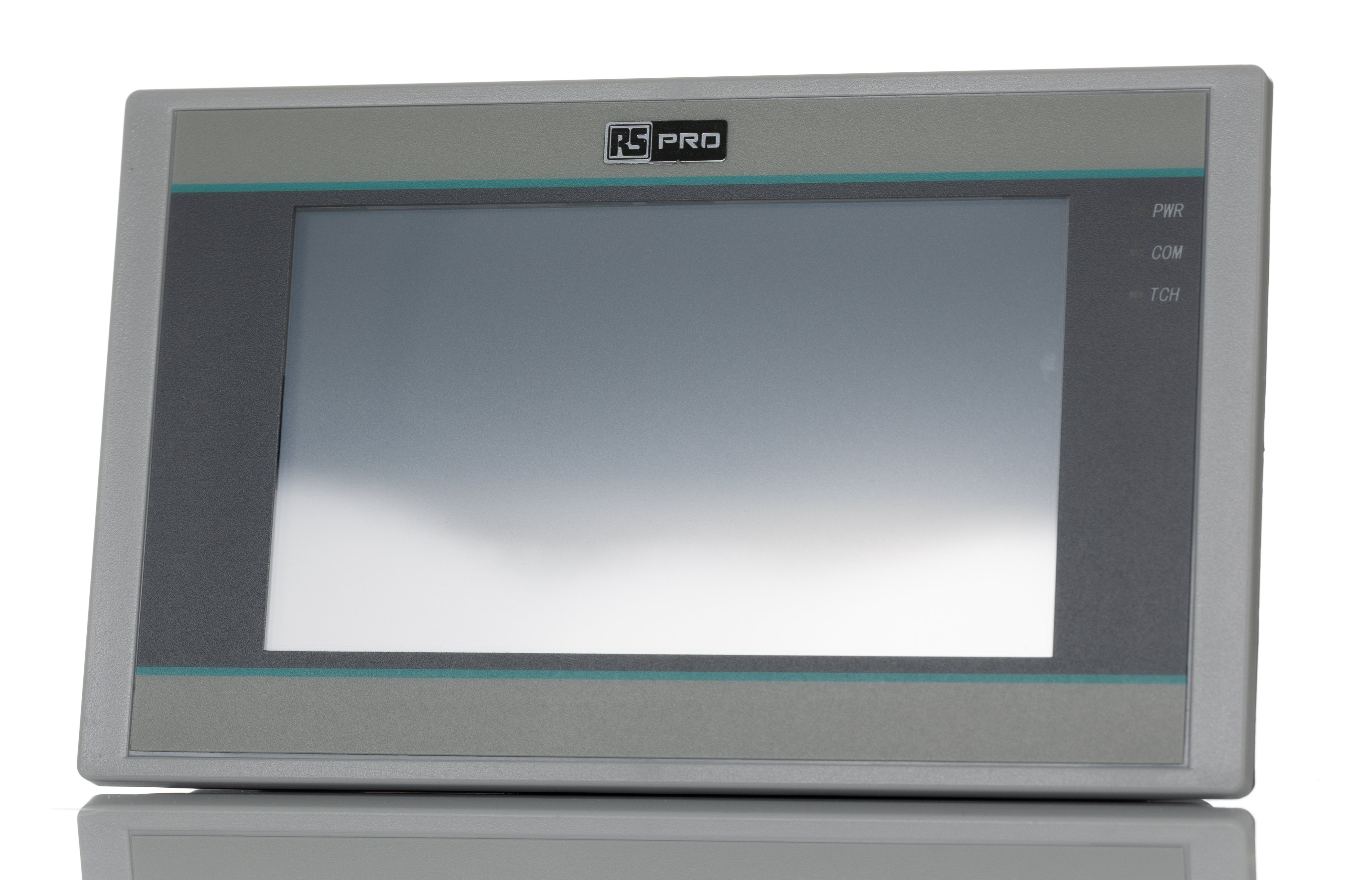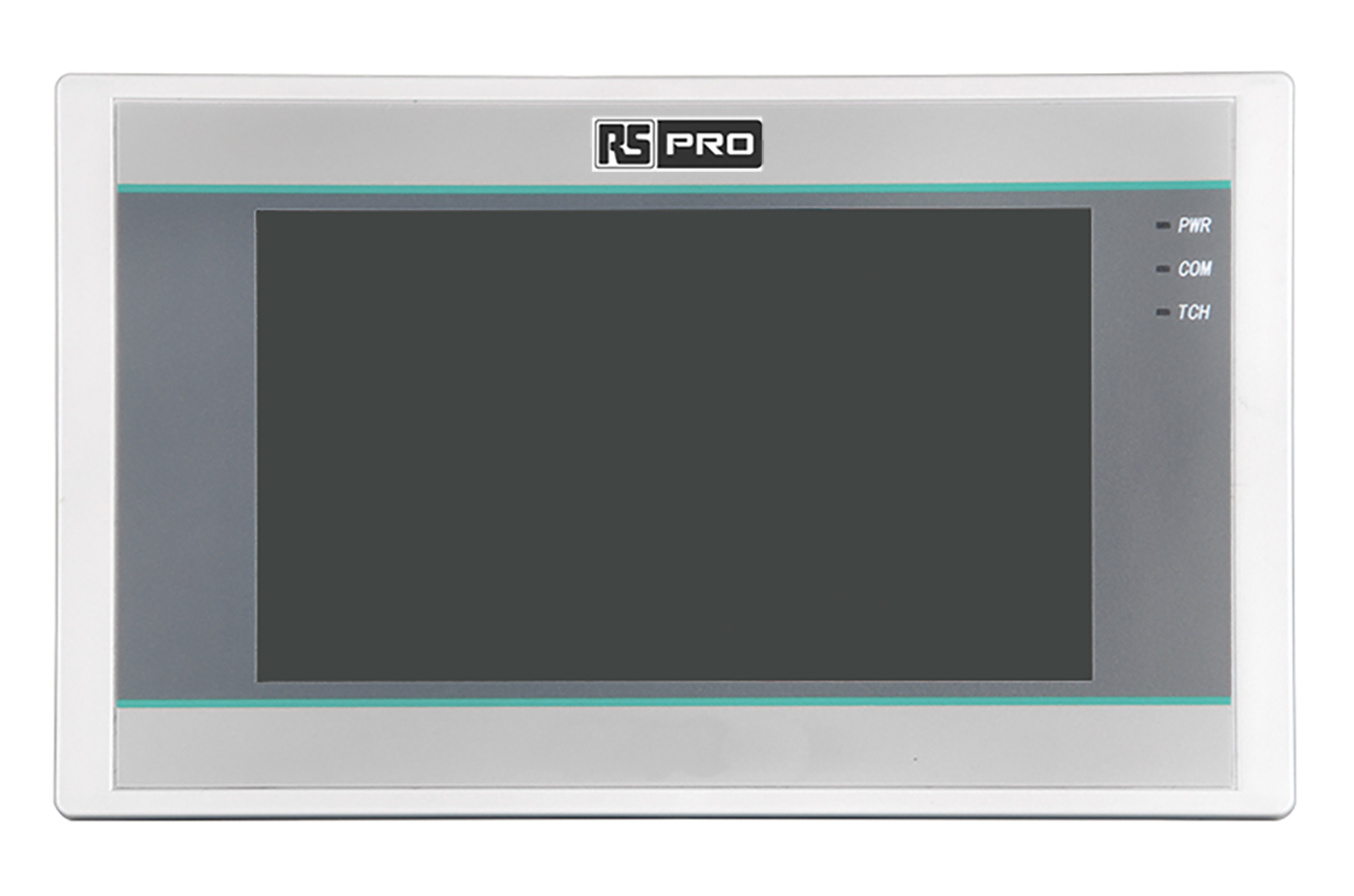 Panel HMI 7 i RS PRO rozdzielczość: 800 x 480 TFT LCD IP65 COM1: RS422/RS485, RS232, ETHERNET, USB 2,0 Host, USB 2,0
