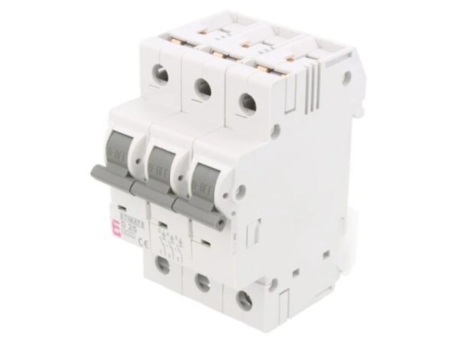 Wyłącznik nadprądowy, 230/400VAC, Prąd znamionowy: 25A, Bieguny: 3, 6kA, Szczelność: IP20 ETIMAT 6 3P D25