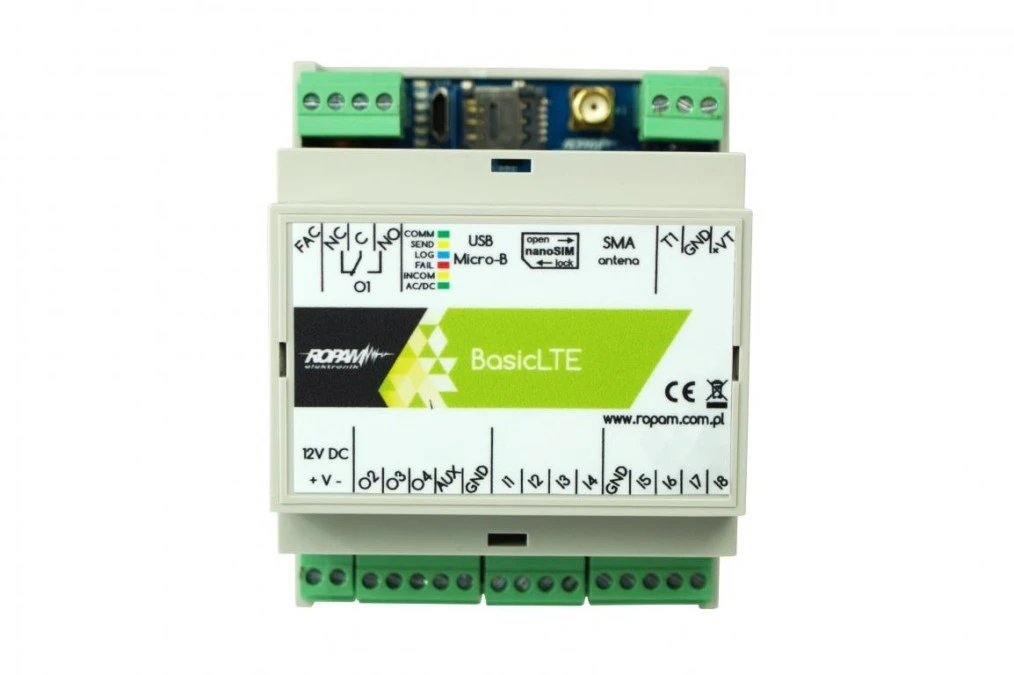 1. Moduł komunikacyjny LTE 4G/2G, 12VDC, 8 wejść, 4 wyjścia, obudowa DIN 4M, BasicLTE-D4M 483.99
