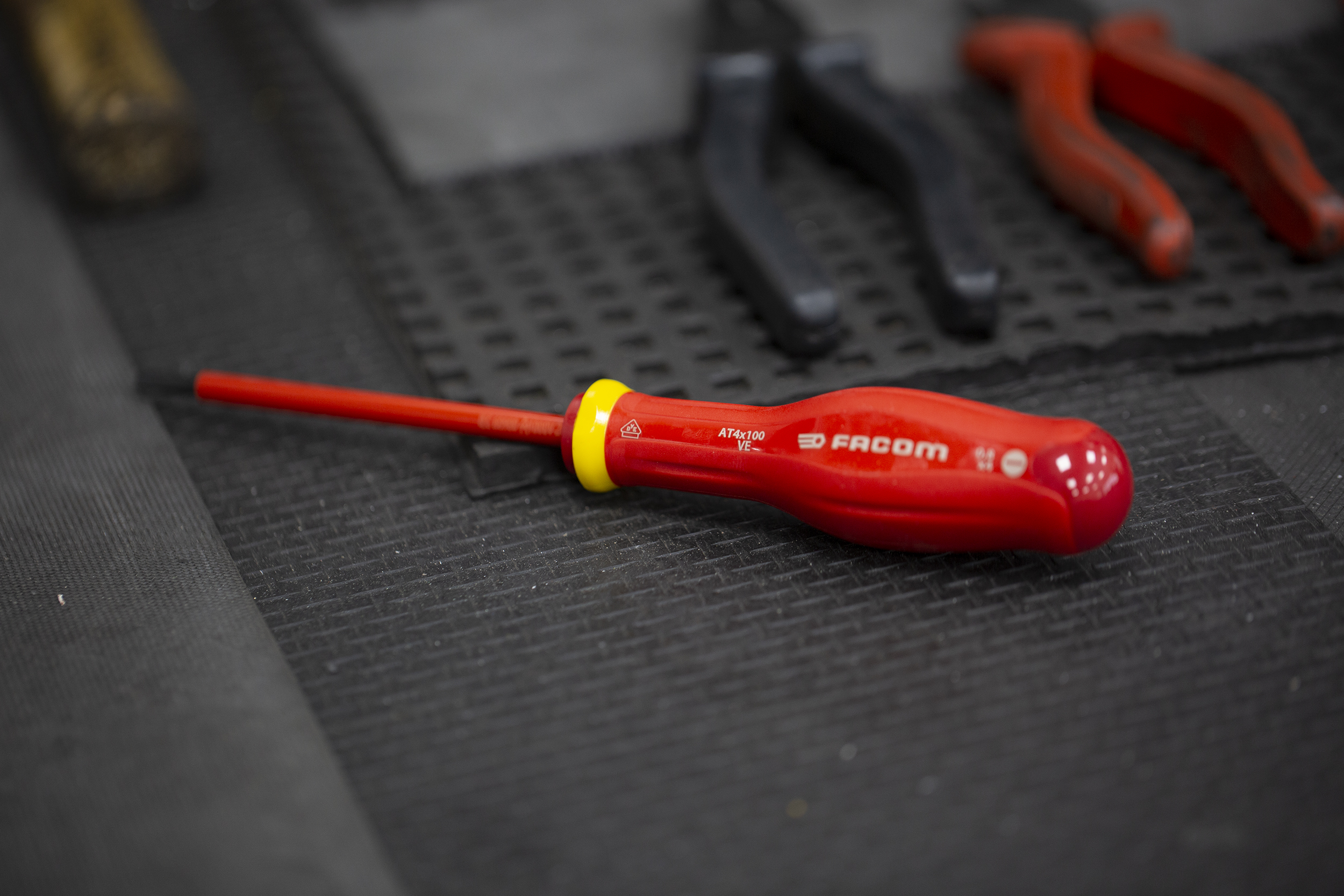 10. Wkrętak izolowany rozmiar końcówki: 4 x 0,8 mm, grot Płaska Facom długość ostrza: 100 mm Wkrętak izolowany 43.44