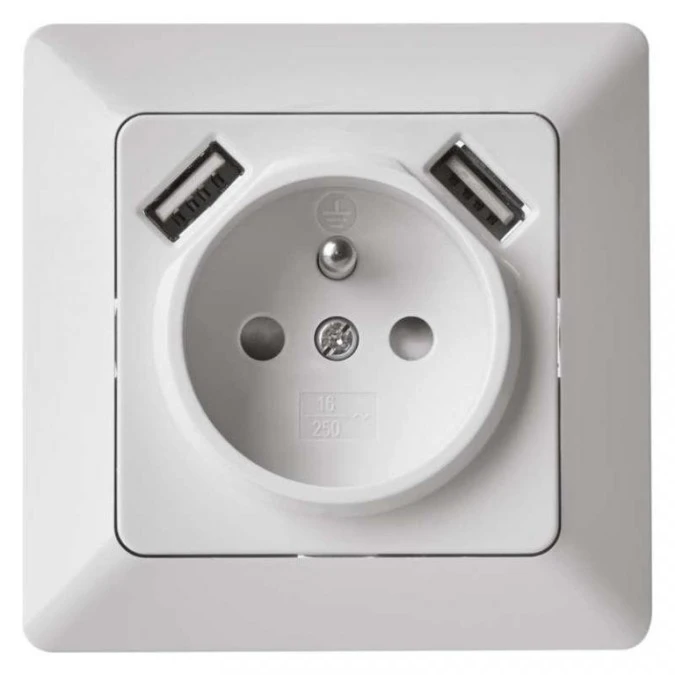 Gniazdo FRENCH z USB 2,1A max. IP20 błyszczące białe EMOS A6000.0