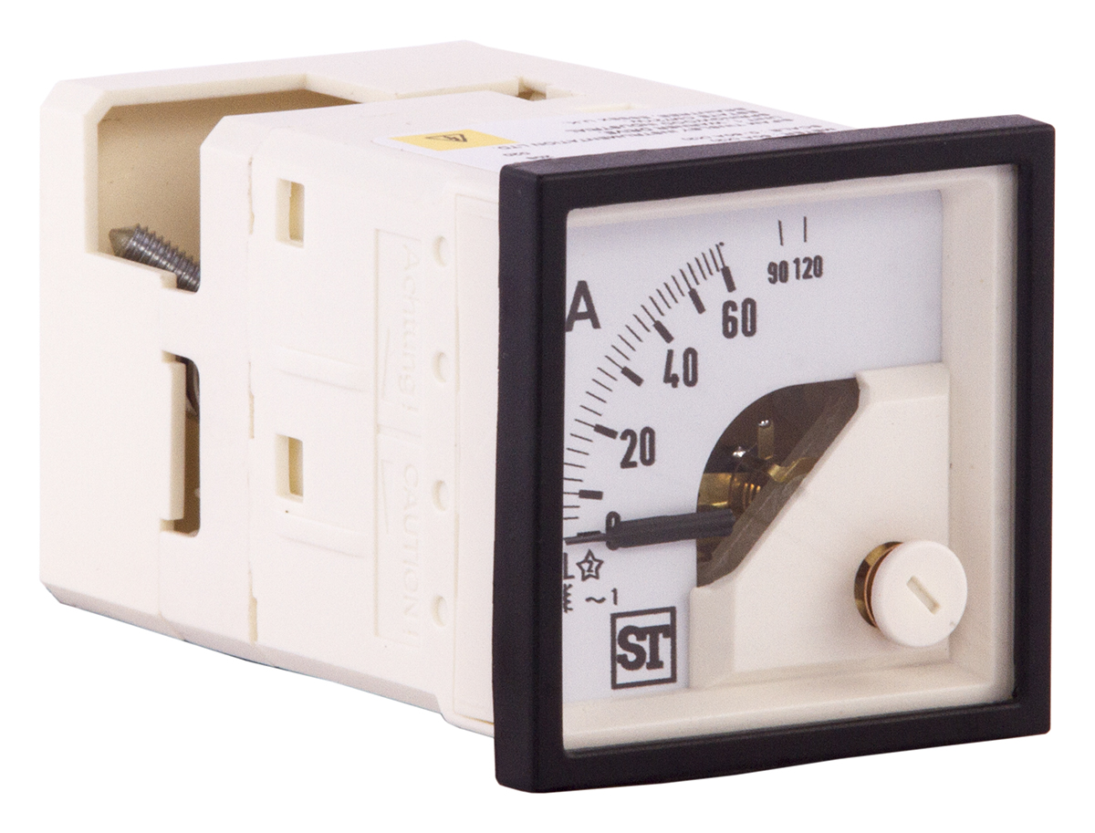 12. Amperomierz analogowy panelowy AC zakres 0 → 60A wysokość wycięcia: 48mm wartość 60A +55°C Sifam Tinsley 92.05