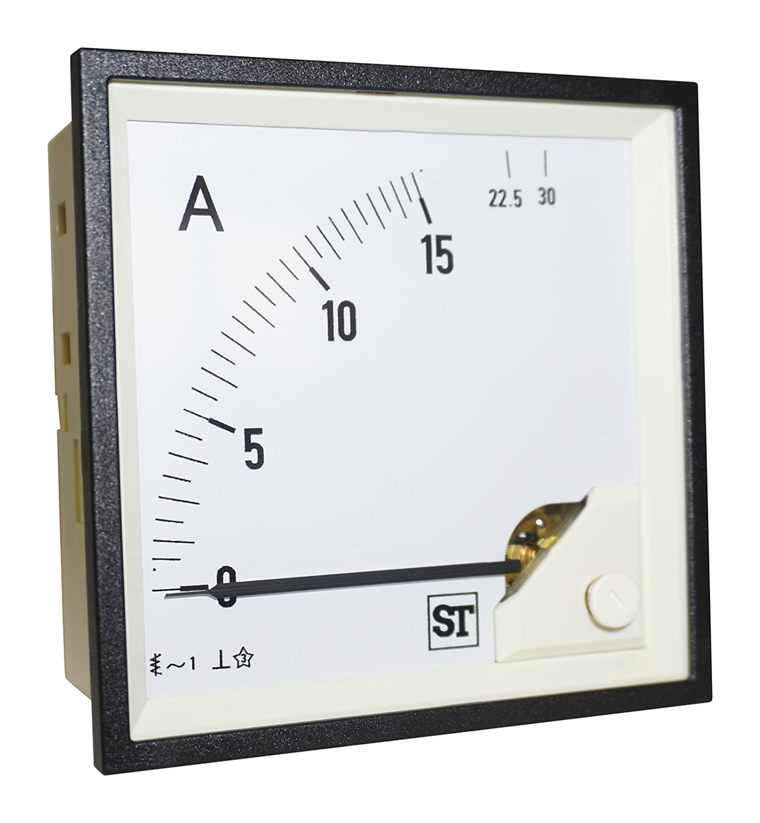 1. Amperomierz analogowy panelowy AC zakres 0 → 15A wysokość wycięcia: 48mm wartość 15A +55°C Sifam Tinsley 92.05