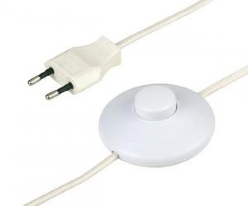 Przewód sznur przyłączeniowy z euro-wtyczką płaską i z wyłącznikiemiem nożnym, 2m, biały / 05665