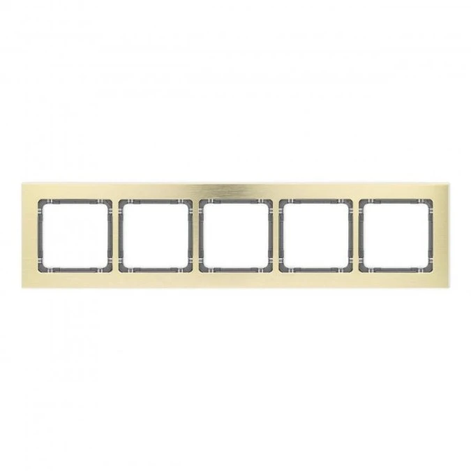 DECO Ramka uniwersalna pięciokrotna - aluminium szczotkowane (ramka: kolor mosiężny spód: biały) 8-0-DRA-5