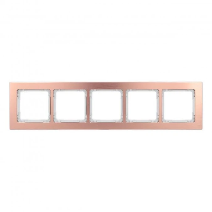 DECO Ramka uniwersalna pięciokrotna - aluminium szczotkowane (ramka: kolor miedziany spód: biały) 9-0-DRA-5