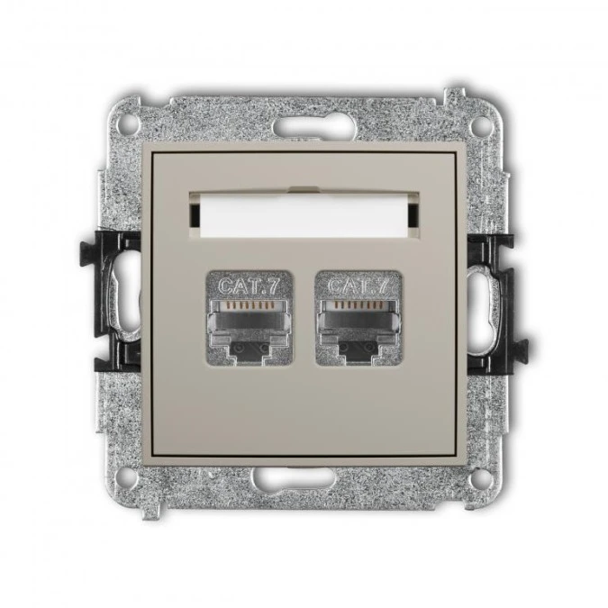 MINI Mechanizm gniazda komputerowego podwójnego 2xRJ45, kat. 7, ekranowany, 8-stykowy, bez pola opisowego taupe 60MGKBO-10