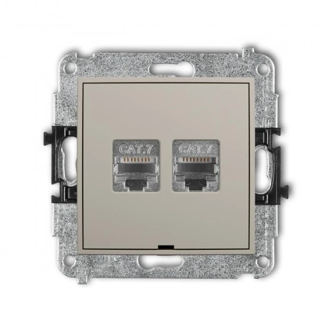 MINI Mechanizm gniazda komputerowego podwójnego 2xRJ45, kat. 7, ekranowany, 8-stykowy taupe 60MGK-10