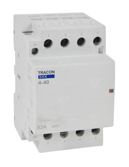 9. Stycznik instalacyjny modułowy 230V AC 4×NO 40A TRACON 106.53