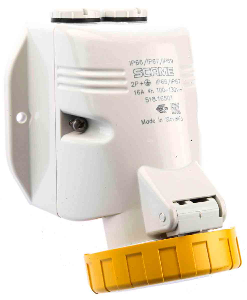 Złącze przemysłowe - zasilające 16A Gniazdo 110 V 2P + E Żeński Scame Żółty Montaż ścienny, IP67