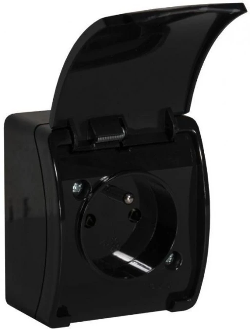 5. Gniazdo natynkowe pojedyncze z uziemieniem, z klapką VIPLAST KOALA CZARNE IP44 161-05 18.76