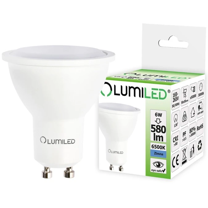 Żarówka LED GU10 6W = 60W 580lm 6500K Zimna 120 LUMILED
