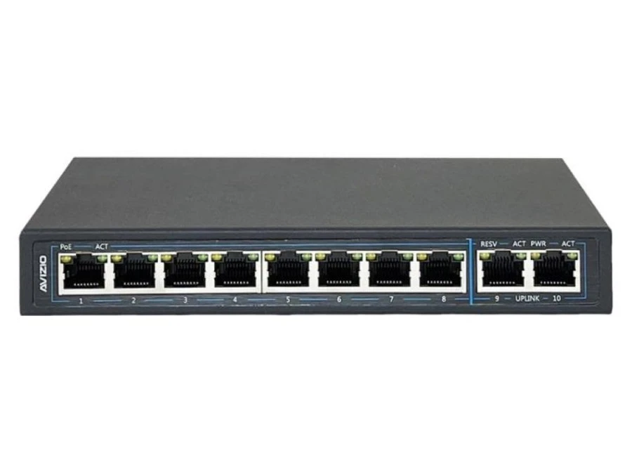 Niezarządzalny przełącznik (switch) 10xRJ45 - 8 portów RJ45 PoE+ 1Gb/s + 2 porty RJ45 Uplink 1Gb/s AVIZIO