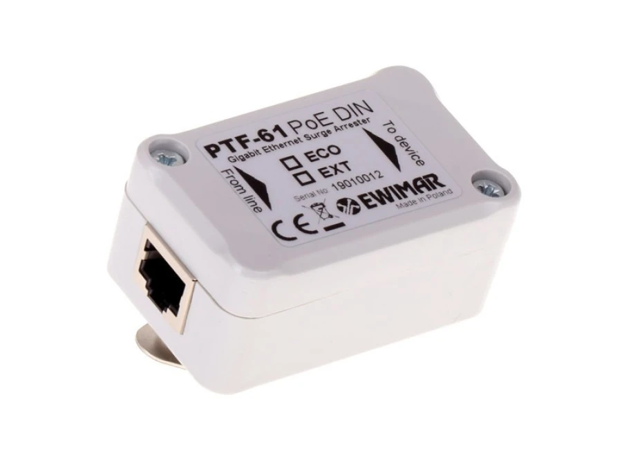 1. Ochronnik przeciwprzepięciowy sieci LAN 1000Mbit na szynę DIN, PTF-61-ECO / DIN PTF-61-ECO/PoE/DIN 283.61
