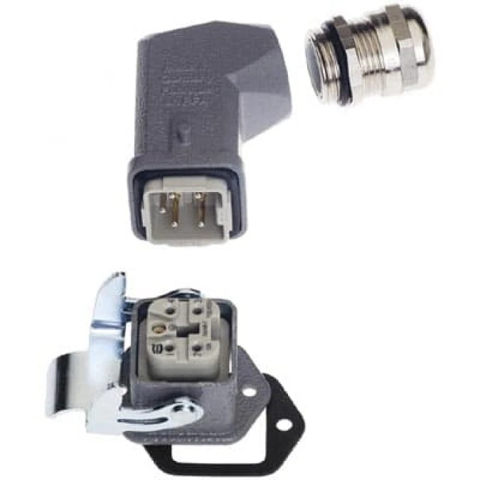 Obudowa metalowa złącza HAN-KIT 3A 4+PE męski+żeński 230/400V 10A Han A wejście kątowe proste (gniazdo) M20 10200040005