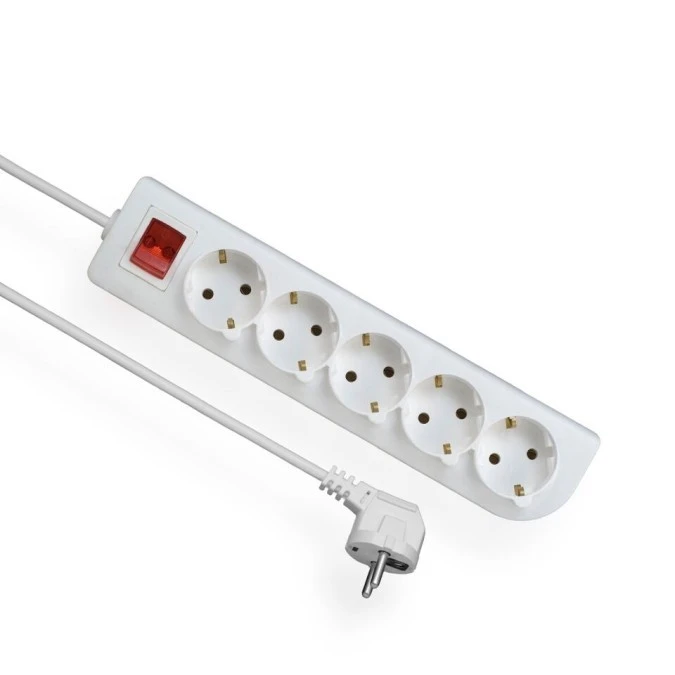 Przedłużacz z wyłącznikiem 5-gniazd z/u SCHUKO 2m ...