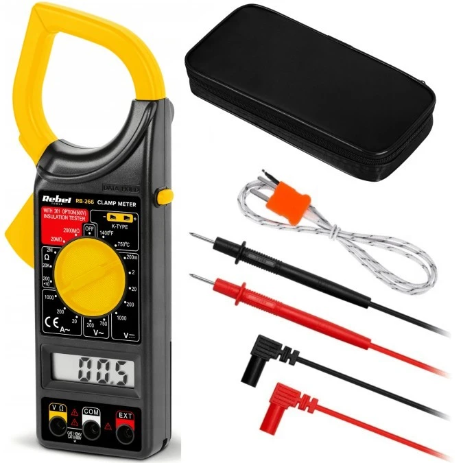 7. Multimetr cęgowy z pomiarem temperatury i rezystancji izolacji miernik uniwersalny z wyświetlaczem LCD REBEL RB-266 57.04