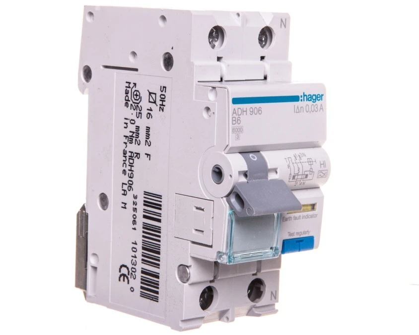 Wyłącznik różnicowo-nadprądowy RCBO 2P B6A 0,03A Typ A ADH906