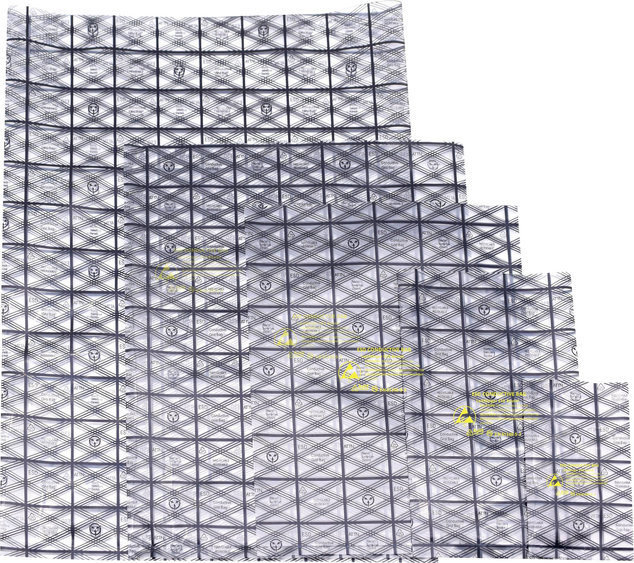 ... x 203 mm conductive antistatic bags, grid pattern ...