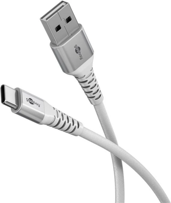 Super miękki kabel tekstylny USB-C™ z metalowymi złączami, 1 m, biały - Długość kabla 1 m