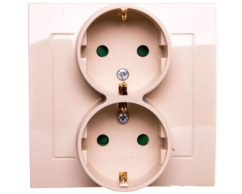 2. KIER Gniazdo podwójne b/u Schuko z przesłonami beżowe GP-2WSP/01 38.23