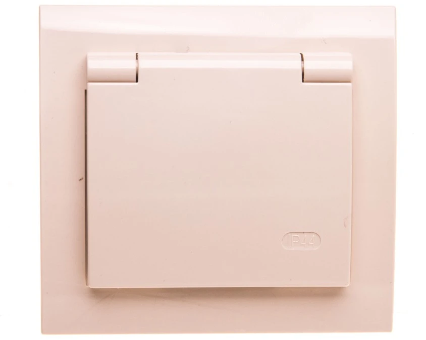 KIER Gniazdo bryzgoszczelne z/u IP44 klapka beżowe GPH-1WZ/01/w