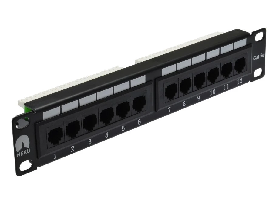 Patch panel RACK 10 cali 1U kat.5e 12p UTP czarny NEKU