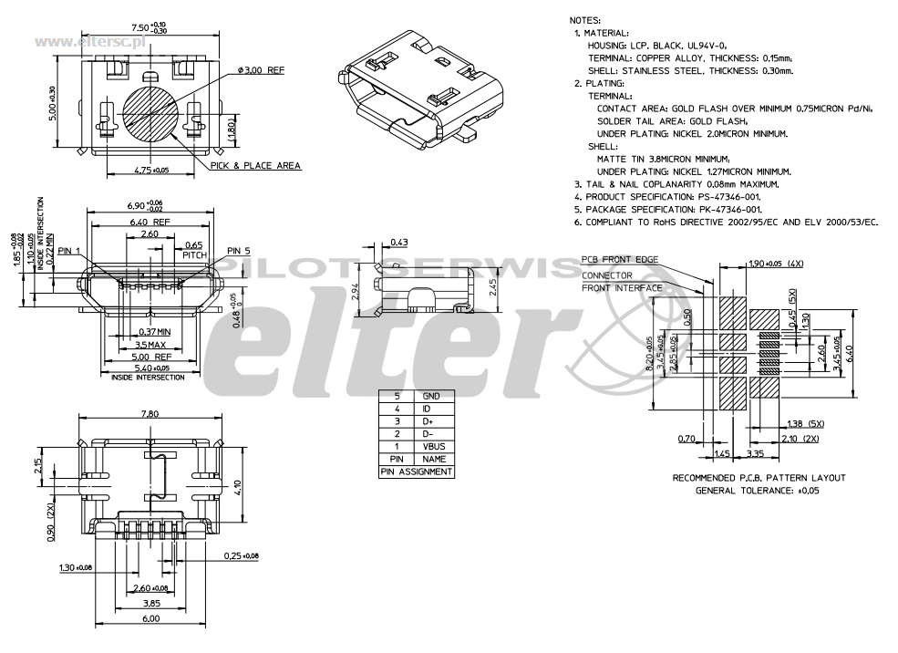 6. Gniazdo microUSB B SMD 5PIN montażowe 10.00