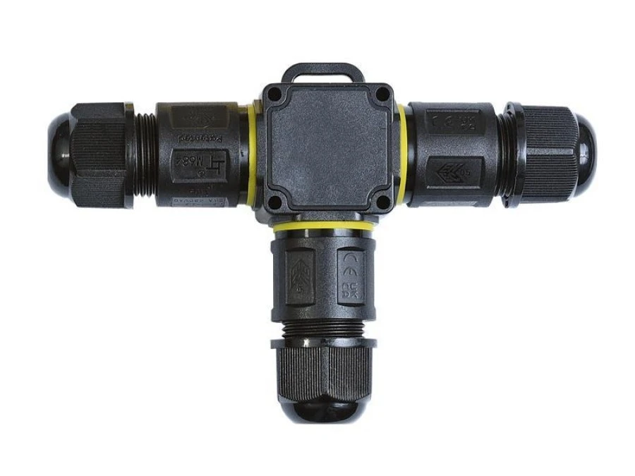 Wodoodporna mufa kablowa trzywlotowa z 3 torowym złączem bezśrubowym, IP68, 450V