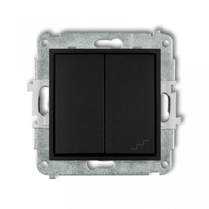 MINI Mechanizm łącznika jednobiegunowego ze schodowym (dwa klawisze bez piktogramów, osobne zasilanie) czarny mat 12MWP-10.21