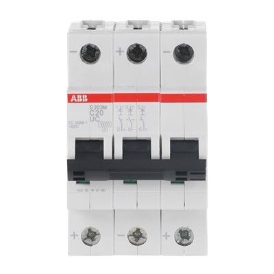 Wyłącznik nadprądowy MCB, Typ C, 3-biegunowy, 20A, 400V, 440V Szyna DIN, ABB S203M-C20UC, S200 M UC