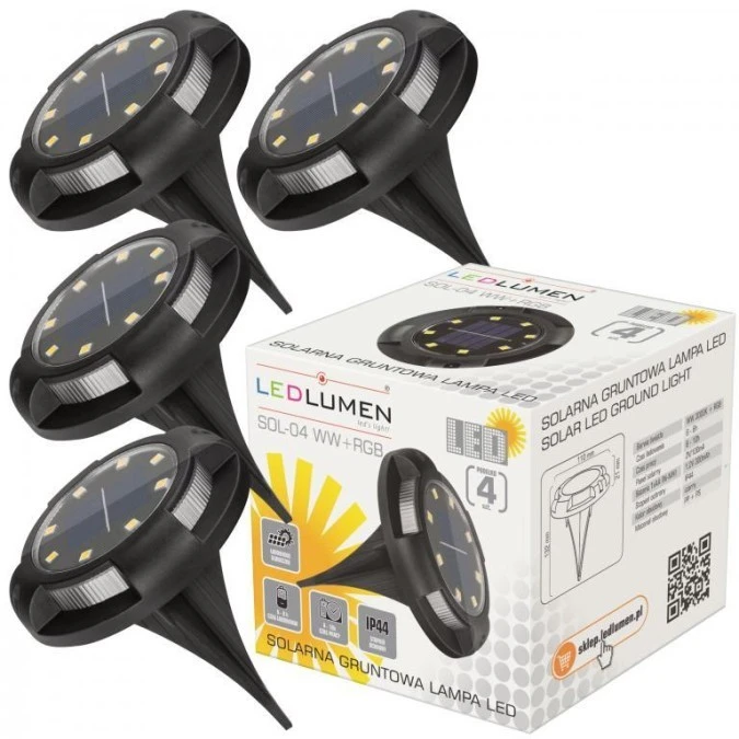 4. Solarna lampa LED 4 szt. WW+RGB gruntowa SOL-04 70.02
