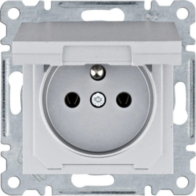Gniazdo Zas 2P+Pe Z Przesł Torów Prąd, Zaciski Bezgw Ip44, Srebrne Alum.,...