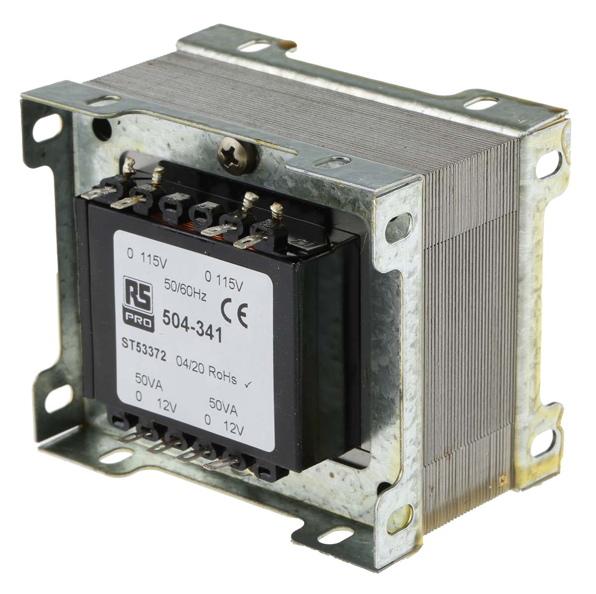 1. Transformator do zabudowy Napięcie wtórne 12V ac 100VA Napięcie pierwotne 115V ac 2-wyjściowy 87% RS PRO 424.28