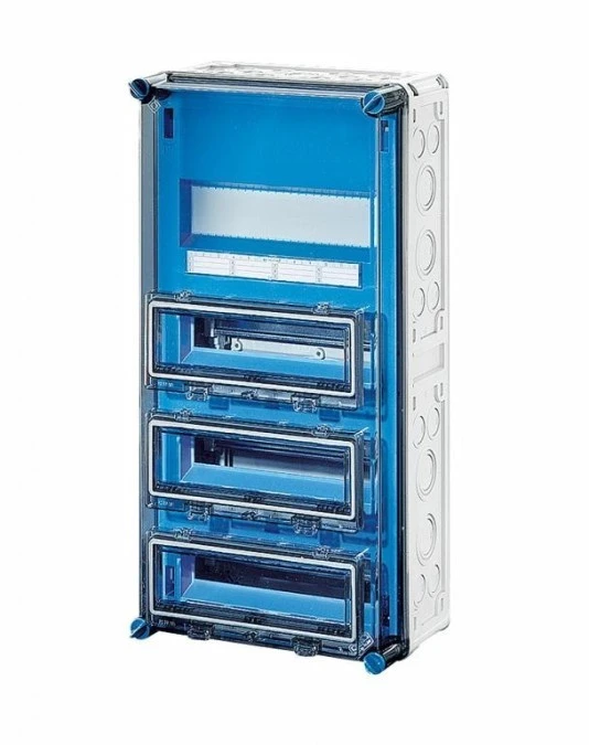 Skrzynka modułowa Mi, IP 65, wlk.4 - 3x12 modułów, z d.szyną nośną i 3 okienkami Mi 1443 2000608