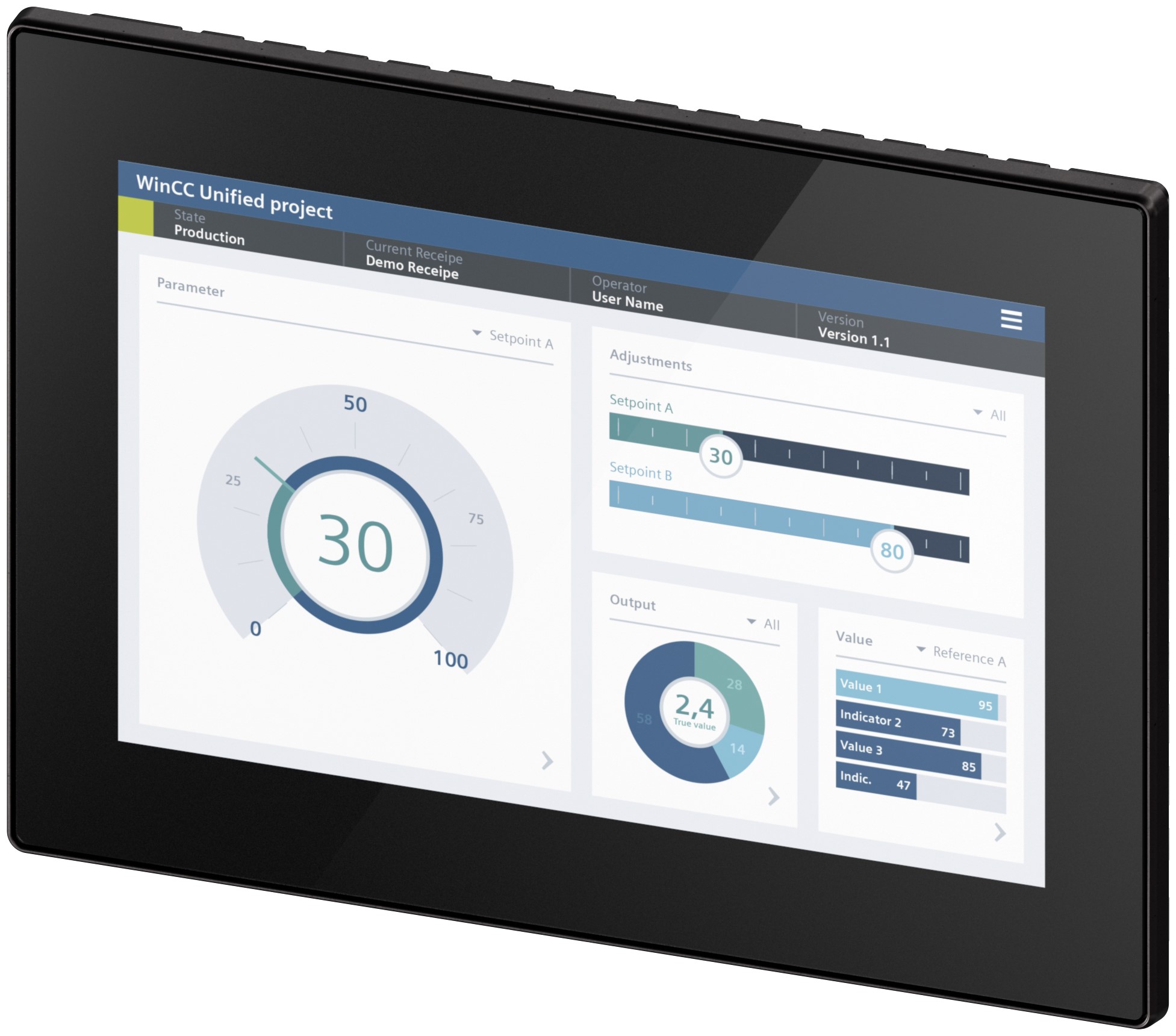 Panel HMI 12,1 cala Siemens SIMATIC rozdzielczość: 1280 x 800 TFT IP20, IP65 3 x USB, RS485 241 x 330 x 70,5 mm