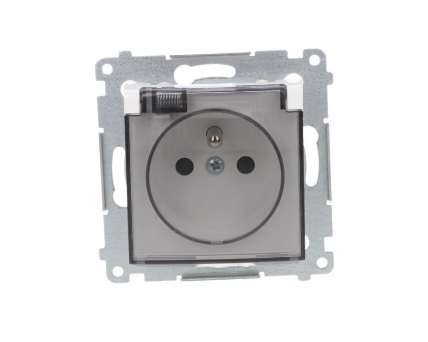 As Gniazdo Bryzgoszczelne Z/U Ip44 Z Przesłonami Klapka Przezroczysta Srebro...