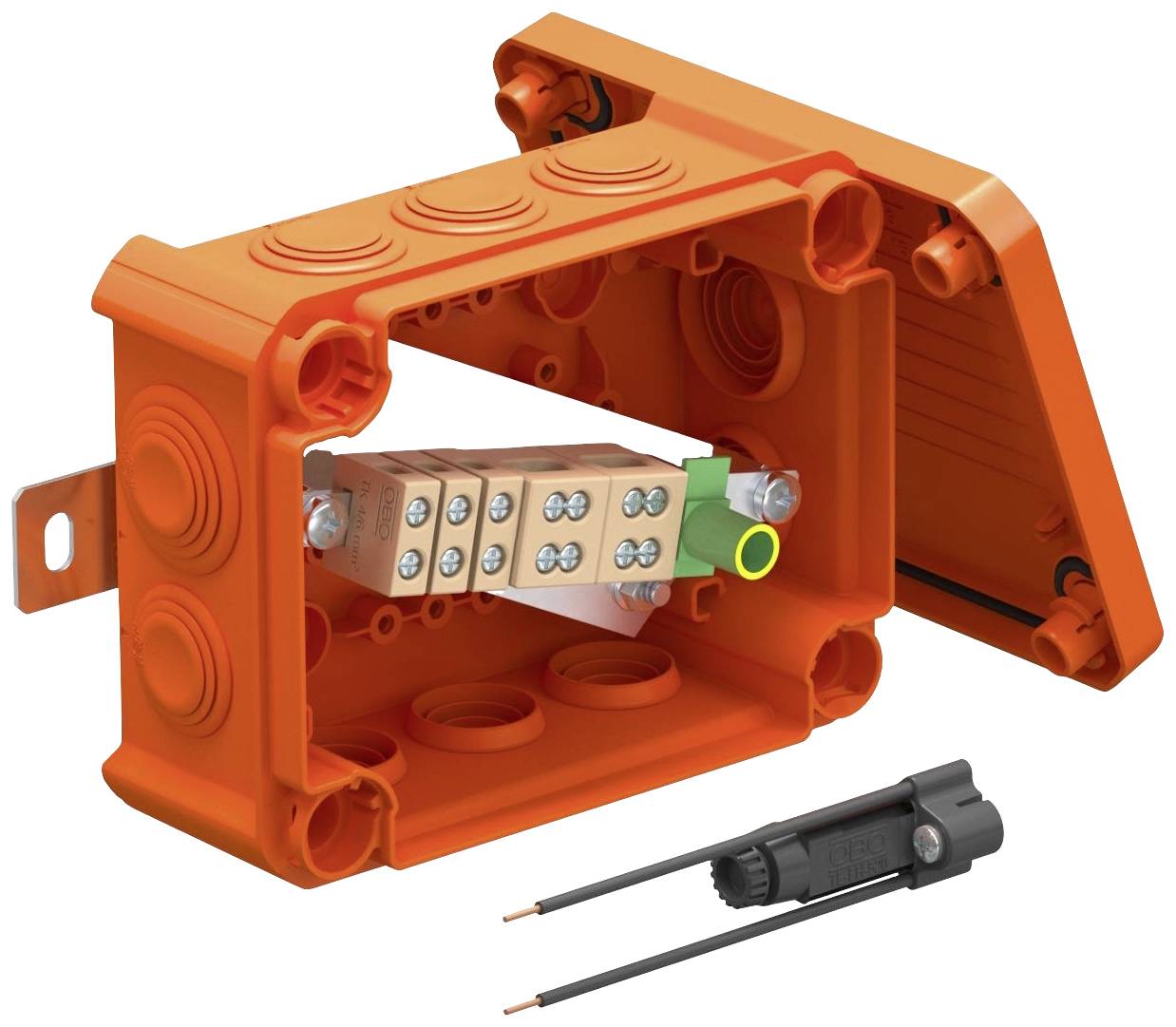 2. Puszka łączeniowo-rozgałęźna metalowa pomarańczowa E90 z bezpiecznikiem topikowym PMO3B(6/4) 803031 530.77