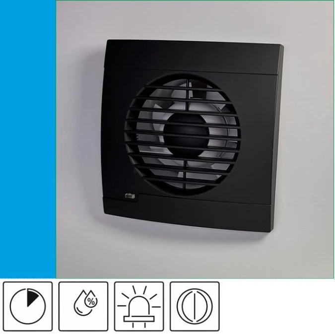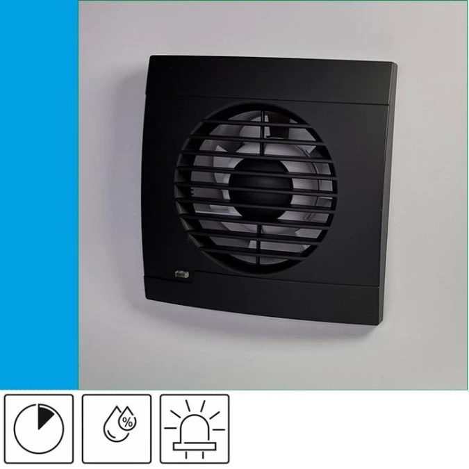 Wentylator domowy Eol 100HT Onyx czujnik wilgotności z opóźnieniem czasowym, fi 100 mm, kolor czarny