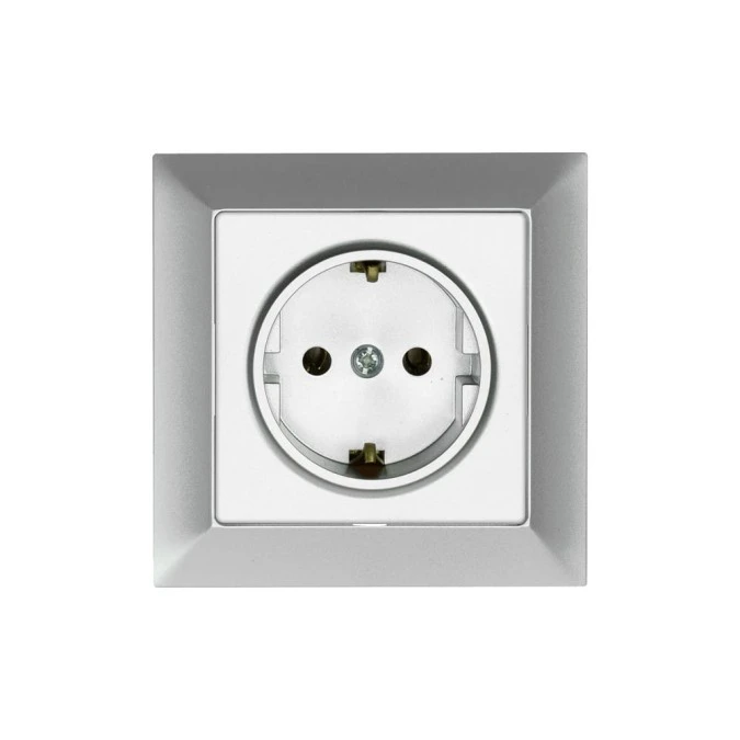 10. Premium Gniazdo wtyczkowe pojedyncze 2P+Z kolor srebro GPt-16 Pr SR 16.21