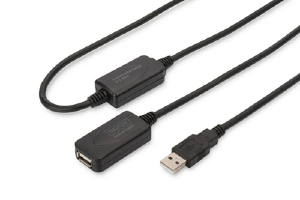 Kabel przedłużający USB 2.0 HighSpeed Typ USB A/USB A M/Ż aktywny czarny 20m DA-73102
