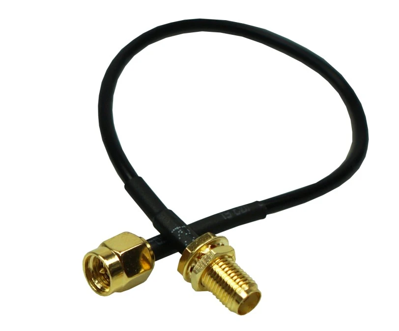 Przedłużacz do obudów i anten SMA, RMAm/SMAf, kabel RG174-20cm, czarny, AT-SMAm-20-SMAf