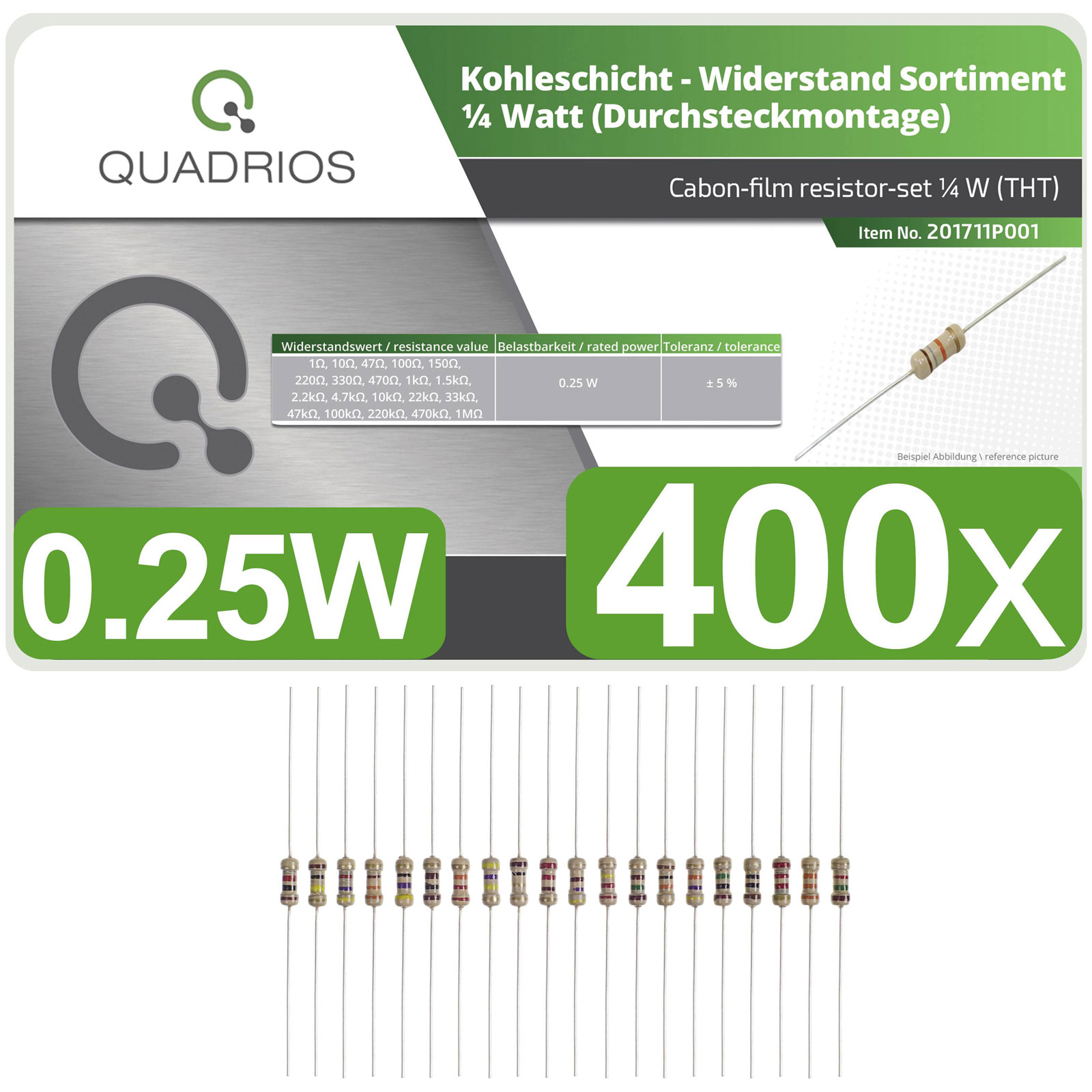Quadrios 201711P001 Carbon film resistor set Axial lead 0.25W 5% 400 pcs