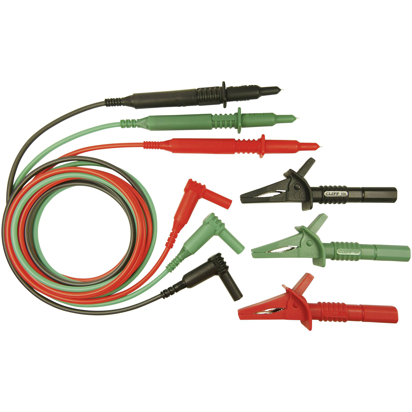 Cliff CIH29916 Safety Test Lead Set 4mm Plug 1.50m Green/Red/Black