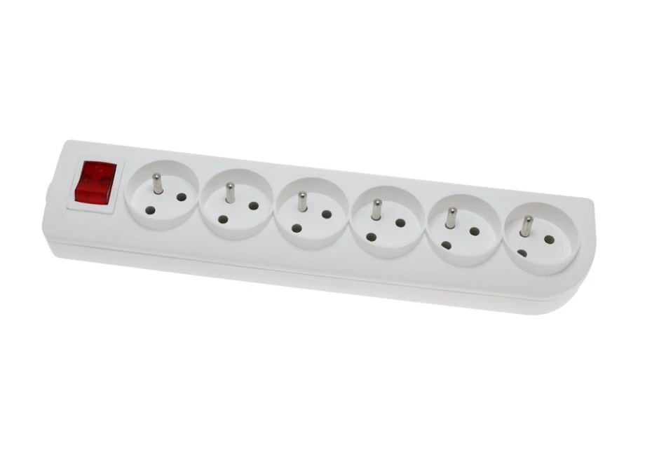 6. Przedłużacz 3-krotny 2P+Z z wyłącznikiem, 1,5m H05VV-F 3x1,5mm2, Imax=16A, płaska wtyczka, biały,ES-5/W/1,5 23.37