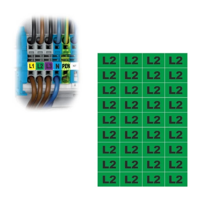 5. TRYTYT Arkusz Znak Samoprzylepny Oznaczenie FAZY Naklejka L2 Zielona 30x20mm 36 Szt 17.48